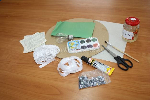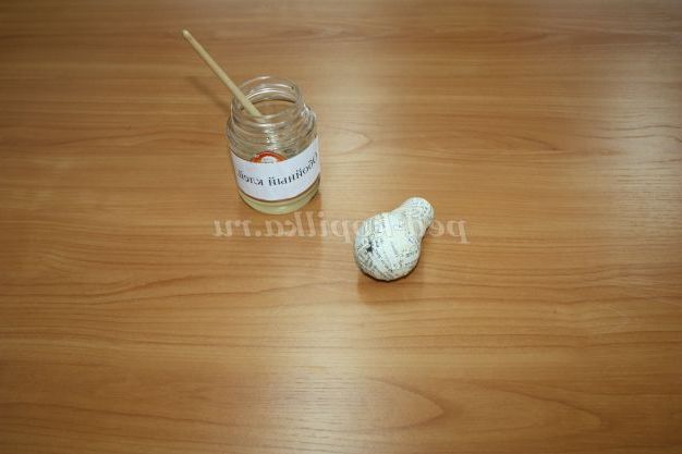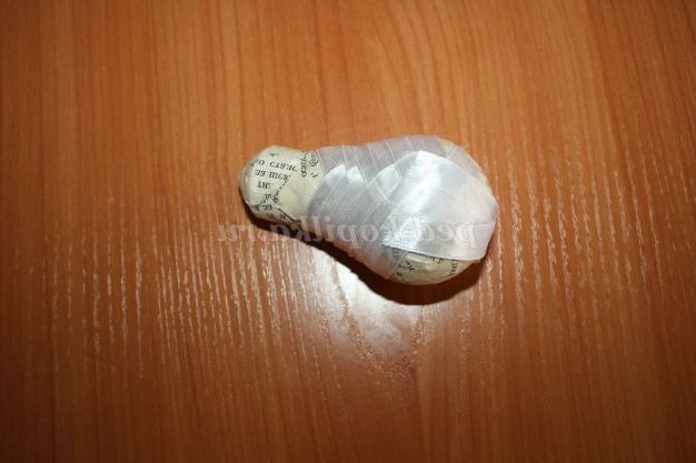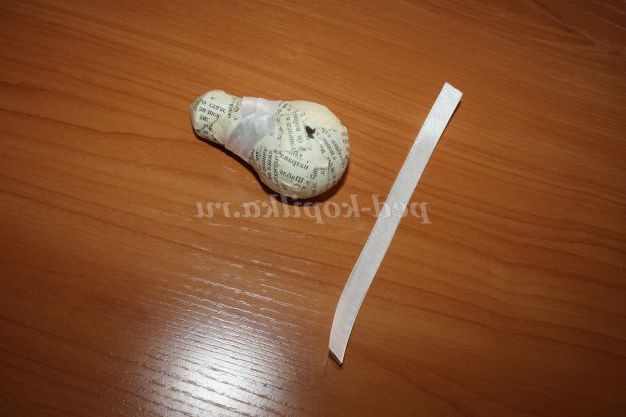 2. Шпалерним клеєм шматочки газетного паперу приклеюємо до лампочки 2-3 шари. (Для того щоб стрічка не ковзала по лампочці особливо в місцях вигину.)