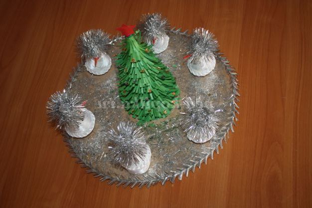 3. В центі встановлюємо ялинку, кріпимо клеєм або скотчем.
