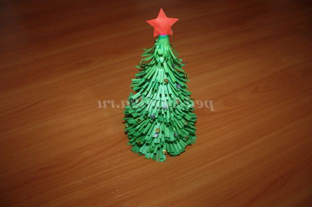 6. Прикрасити сріблястими, золотистими паєтками , на верхівку прикріпити зірку з паперу. (фото №15)