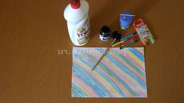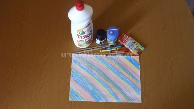 Зафарбовуємо аркуш паперу або картону кольоровими восковими мелками.Используем будь-які кольори, крім чорного.