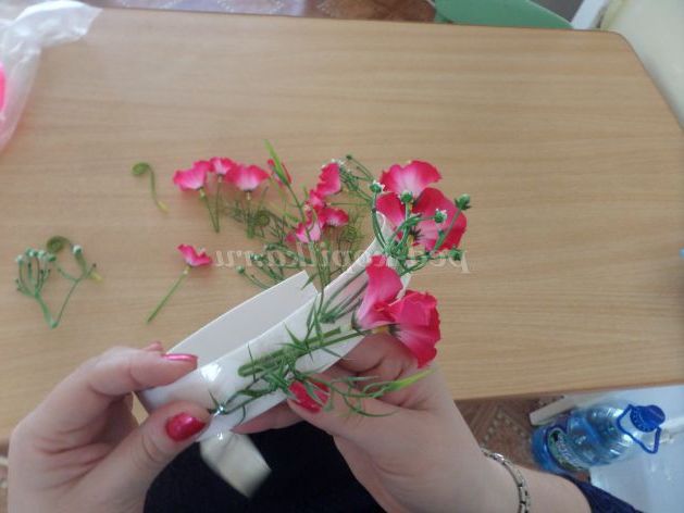 Завдання: познайомити зі способом плетіння вінка з штучних квітів, розвивати дрібну моторику рук, увагу, естетичний смак. Виховувати дбайливе ставлення до праці інших людей.