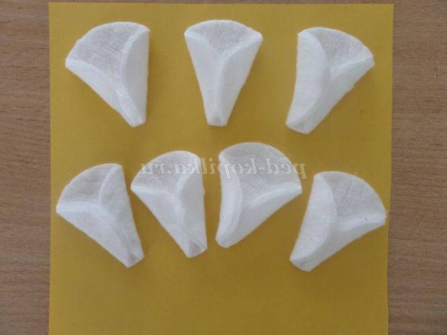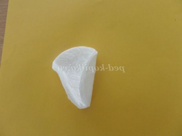 Крок перший: з ватяних дисків робимо "конвертики" - краю дисків загинаємо під нахилом одне на одного, внизу повинен вийти кут.