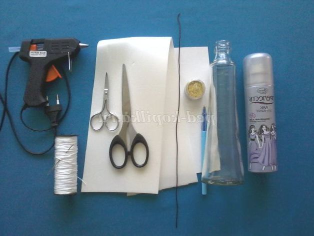 картон для шаблонів, кулькова ручка, ножиці, гарячий пістолет, лак для волосся, косметичний блиск, голка з великим вушком, нитки капронові №20, дріт, гофрований папір або серветка, манікюрні ножиці з гострими кінцями, пляшка для основи.