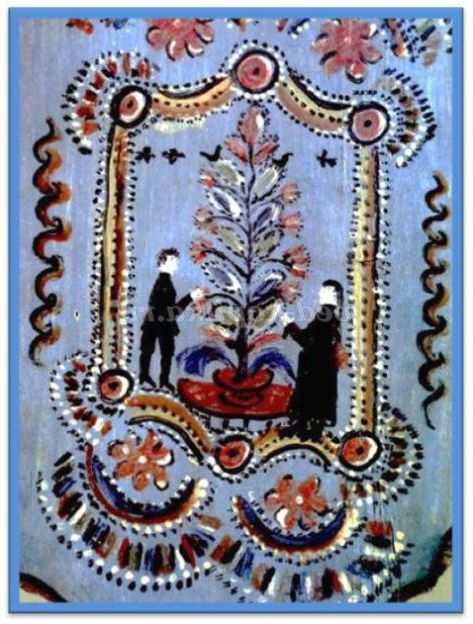 «Древо життя» зображує древні і молоді покоління вінчає пара птахів - символ щасливої подружньої пари. Магічні мотиви присутні і в червоному кольорі - символі вогнища і життя; у синьому і зеленому кольорах - символ рослин, наповнених живлющою вологою.