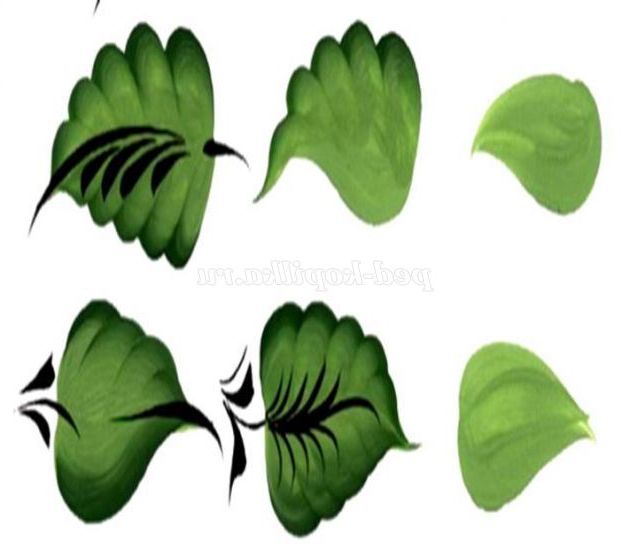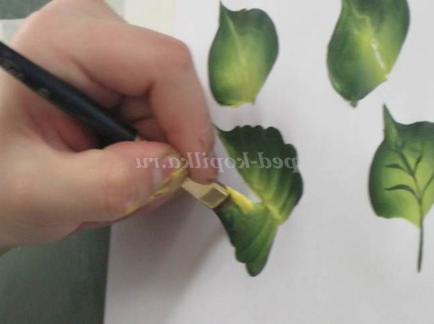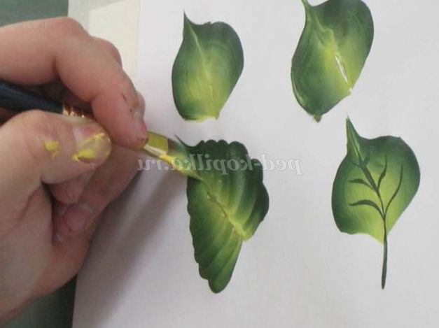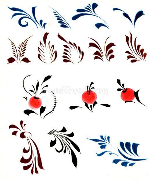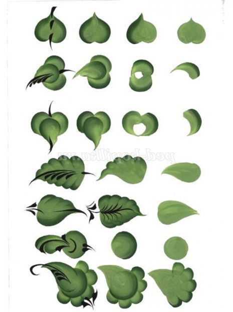 Якщо ви не зможете відразу вловити форму листа, прорисуйте її олівцем, а потім прописуйте пензлем. Останнім етапом буде виконання приписів. Мотив "листок" має безліч варіантів написання, показаних на рис.