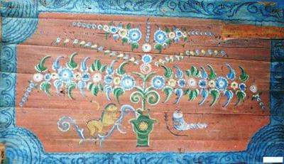Уральська домова розпис вражає насамперед своєю монументальністю: розписуються сіни, хата, світлиця, а в них стіни, простінки, стелі, двері та багато іншого.