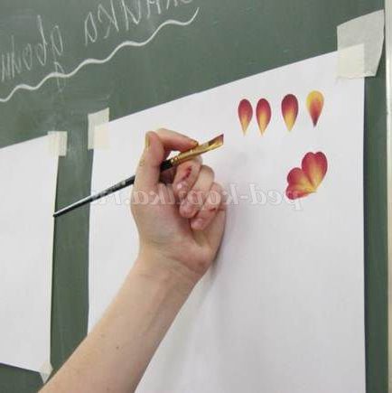 4) розвивати мальовничі навички: вміння користуватися палітрою, плоскою кистю;