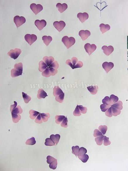 Нанесіть подмалевок діаметром 2 див По зовнішньому краю пропишіть пелюстки, вони повинні мати приблизно однаковий розмір. Квітка завершіть прописом серцевини, зробивши в ній одну ягідку. Різні варіанти написання серцевини квітки показано на малюнку нижче.