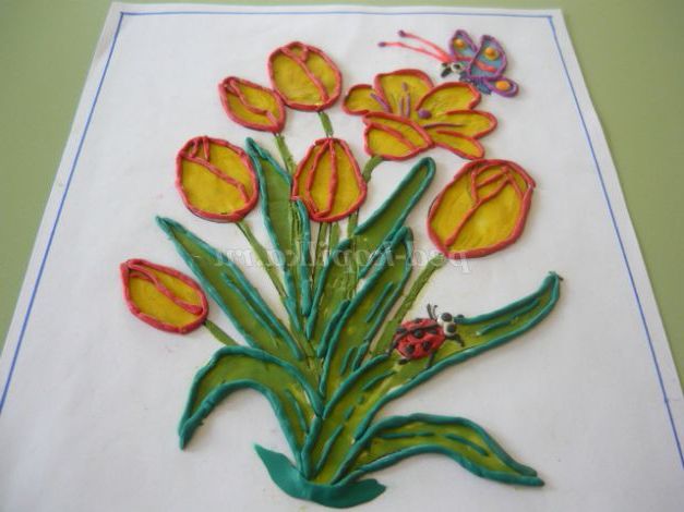 ![]() Пластилинография по темі Весна для дітей від 4-х летМастер-клас «Букет для мами»Автор: Кирило Посылин, 4 роки