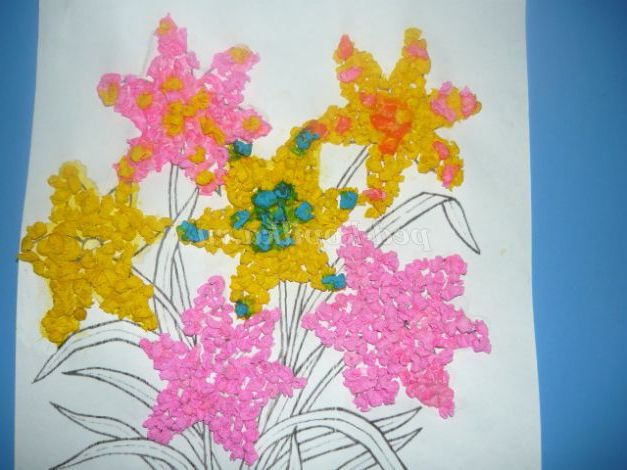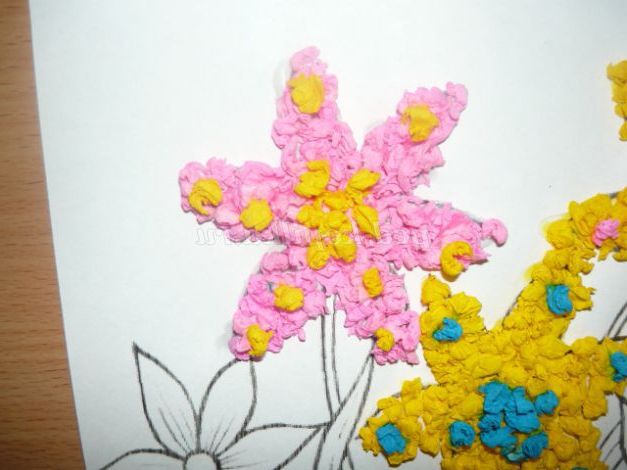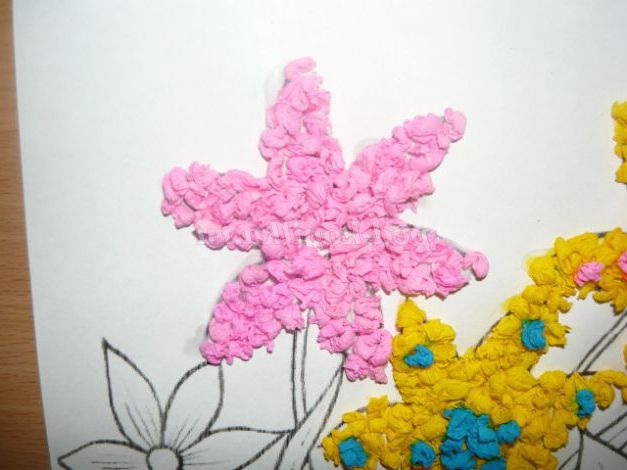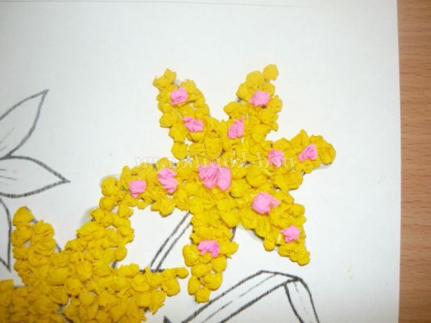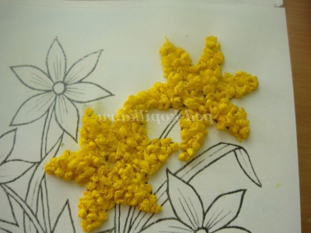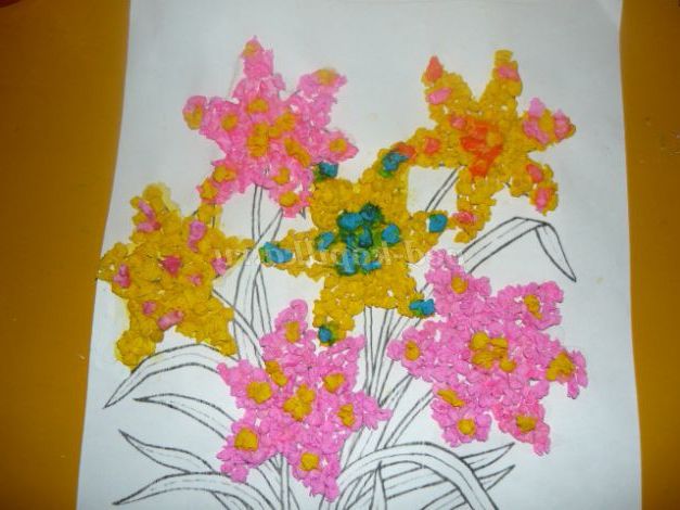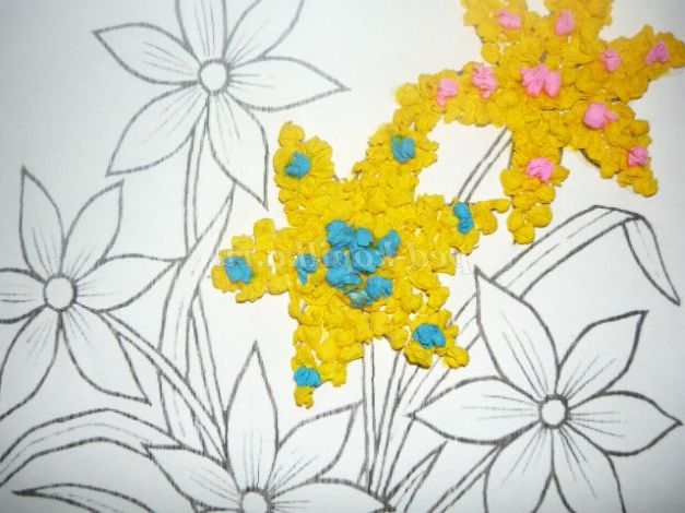 Наклеюємо кульки жовтого і червоного кольору на інші квіти