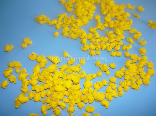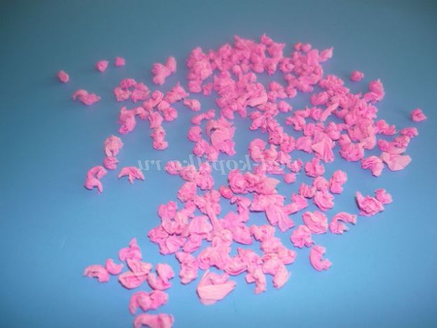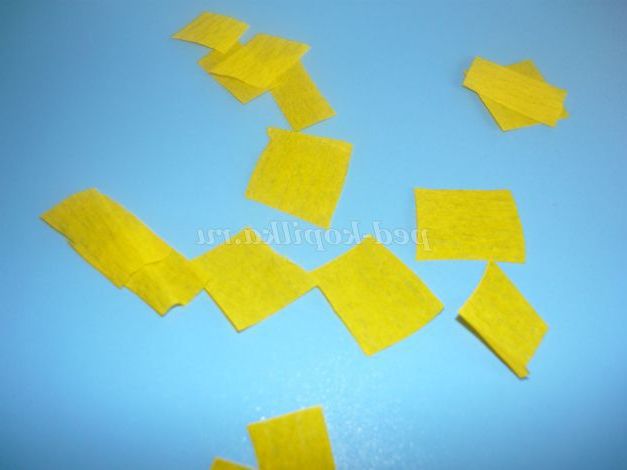 Гофрований папір різного кольору нарізаємо невеликими квадратиками