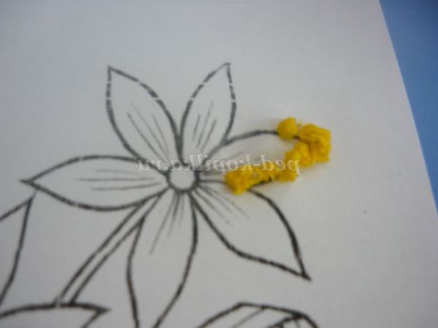Починаємо наклеювати кульки на пелюстки квітки (використовуємо клей ПВА)