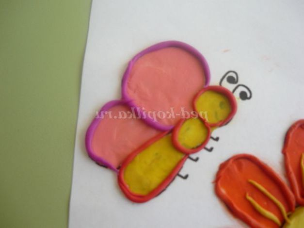 Приступаємо до «зафарбовуванню» метелики. Жовтим - тулуб, рожевим - крила.