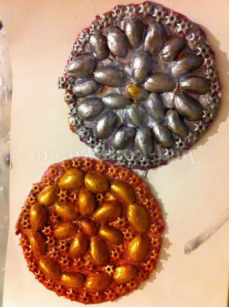 По краю баночки викладаємо рядами фісташкові шкарлупки.