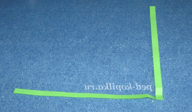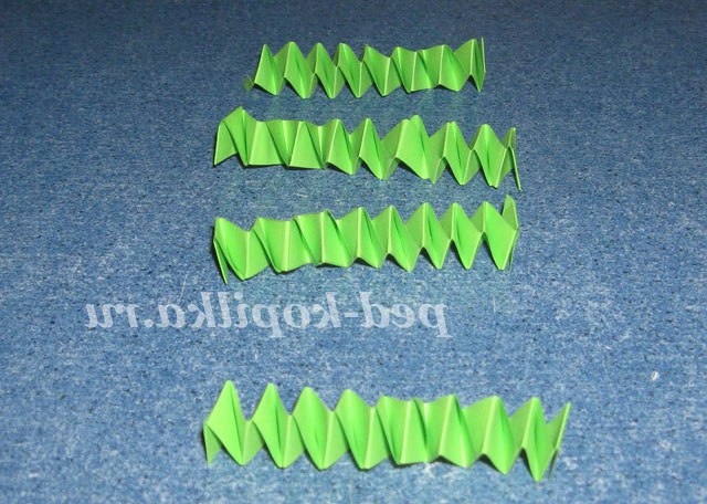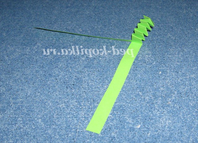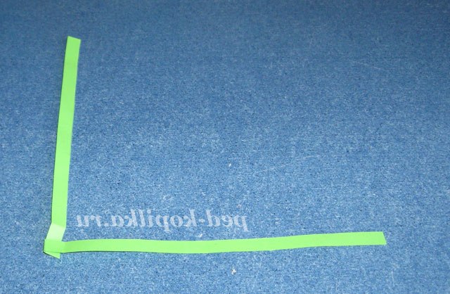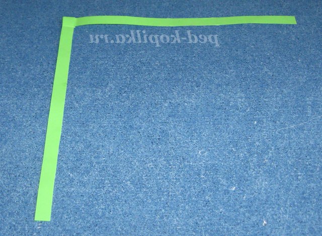 Для виготовлення ніг беремо двосторонню світло-зелену папір вирізаємо 8 смужок( шириною 1 см, довжиною 20 см).