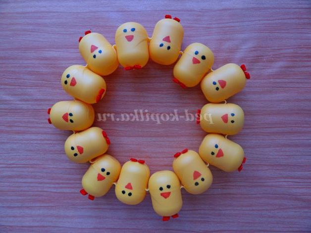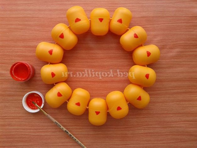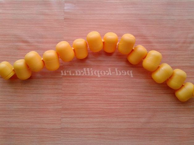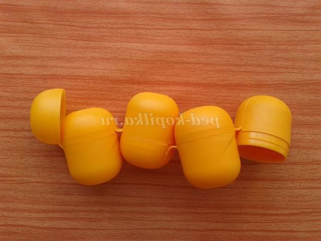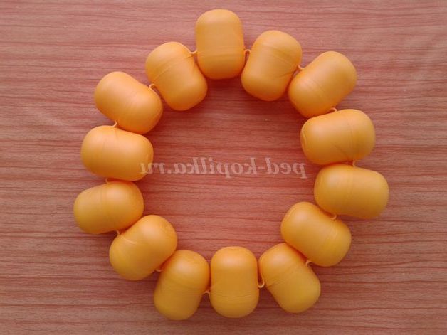 Для віночка нам знадобиться 14 коробочок від кіндер яєць. Відкриваємо коробочки і з'єднуємо один з одним.
