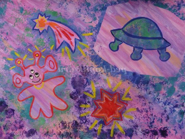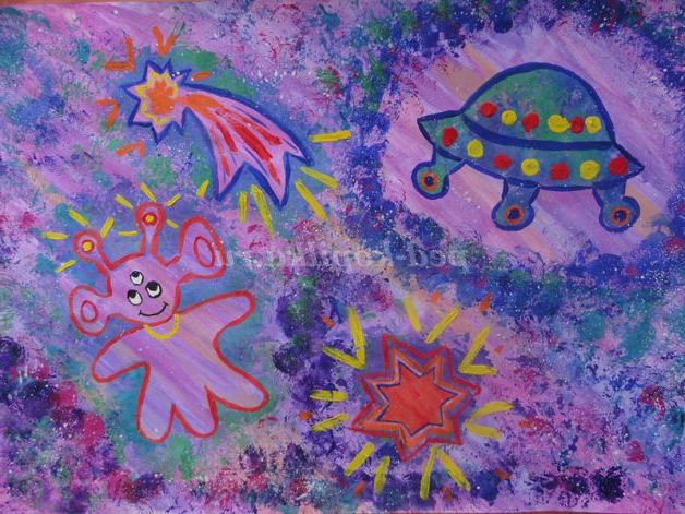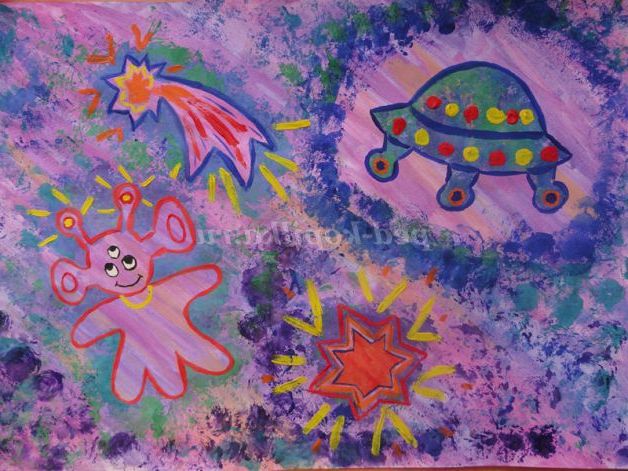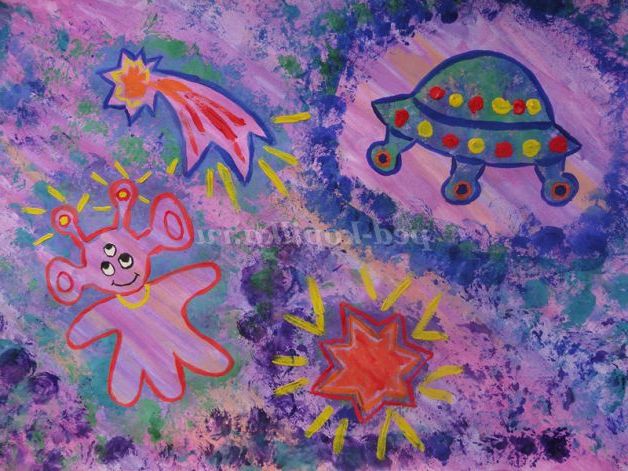 «Космос»!Це незвіданий світ! Настільки величезний, що для його усвідомлення потрібно задіяти всі уяву. Діти справляються з цим з легкістю. Секунда - і вони вже мчать на ракеті, ще мить - і вони рятують інопланетянина з чорної діри! І масштаби для них не перешкода!