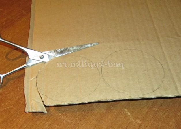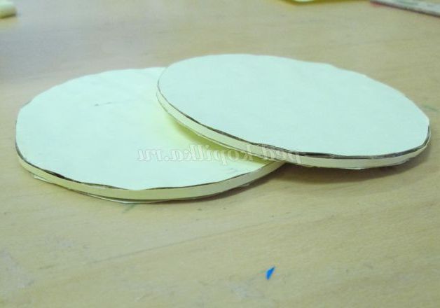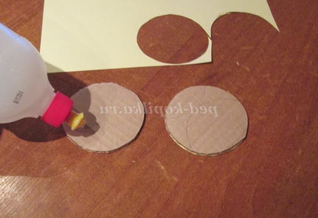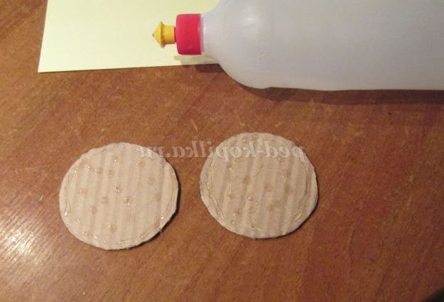 1. Почнемо роботу з виготовлення денця і основи для кришки. Для цього назвімо картон. За допомогою олівця обведемо дно пляшки з Майстер-клеєм двічі.