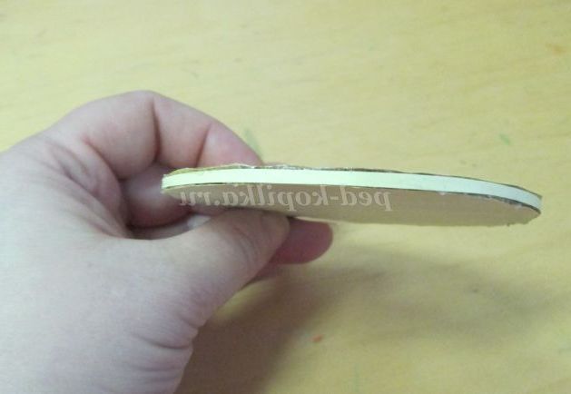 10. Тепер потрібно проклеїти краєчок денця і кришечок. Для цього виріжемо жовтеньку смужку шириною 0, 3 сантиметра (це ширина картону) і довжиною 26 сантиметрів. 2 штуки. Наносимо Майстер-клей на бік денця.