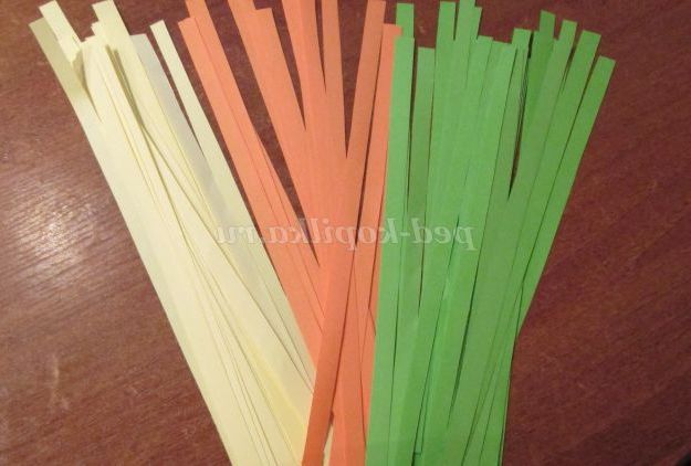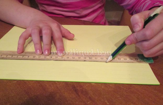 15. Приступаємо до нарізування смужок для кручення. Беремо помаранчевий аркуш паперу і расчерчиваем на смуги по 1 сантиметру.