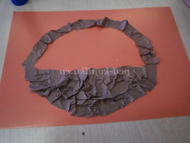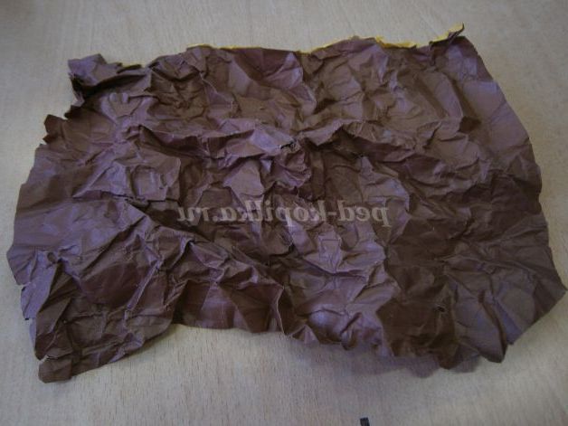 3. Приступаємо до виготовлення кошики. Для цього нам знадобитися лист коричневого паперу. Його треба зім'яти.