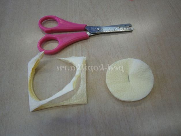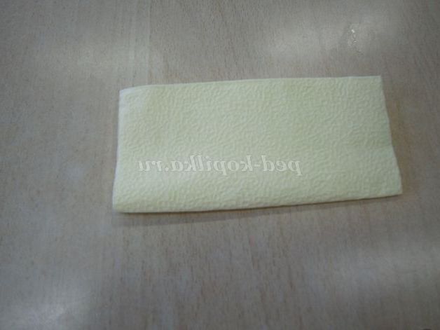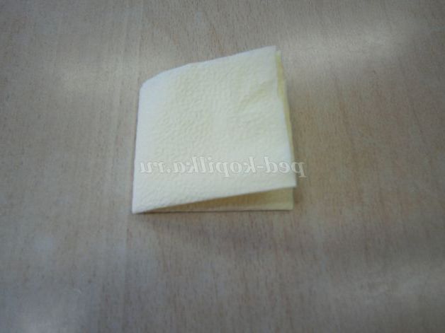 1. Починаємо роботу з виготовлення квіточок. Візьмемо серветку і складемо її навпіл.