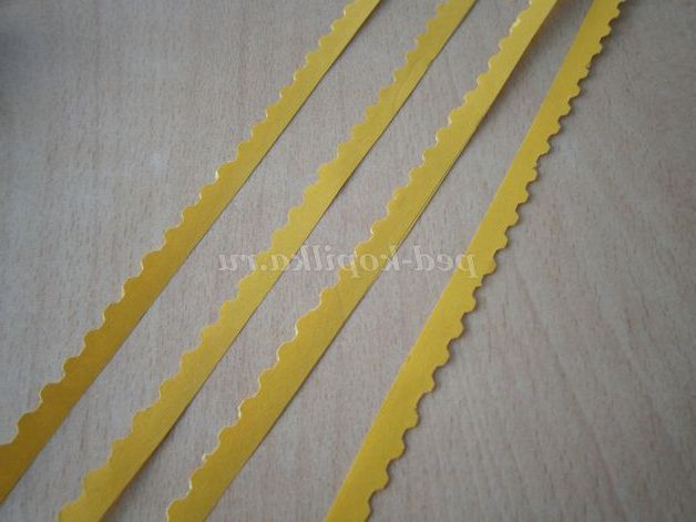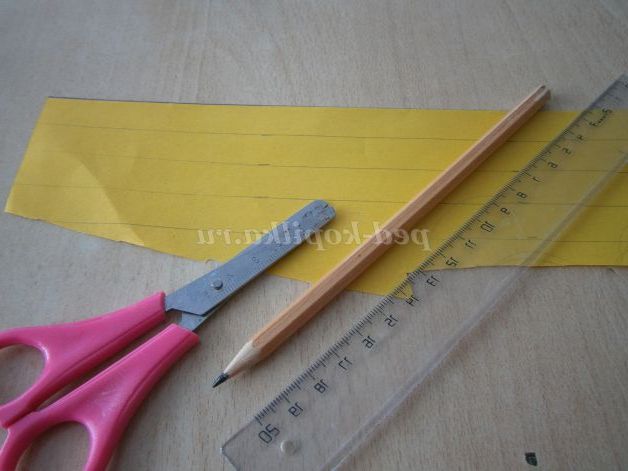 Зараз потрібно зробити рамку. Для цього нам знадобитися жовта кольоровий папір. Нарізаємо смуги шириною 1, 5 сантиметра.