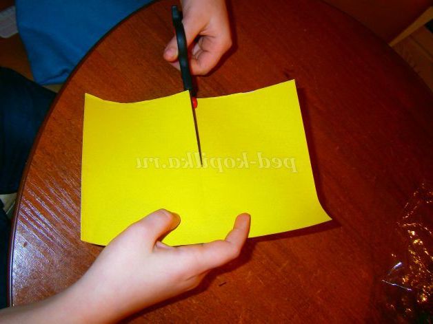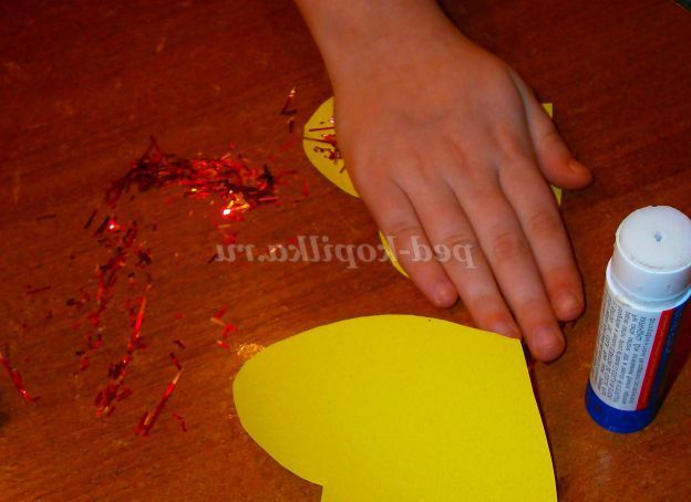 2. Переходимо до виготовлення сердечка. Нам знадобитися оксамитова папір жовтого кольору. Половина стандартного листа.