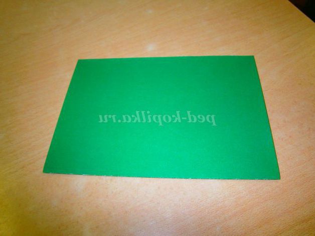 1. Починаємо роботу з виготовлення ялинок. Нам потрібно вирізати 12 ялинок. Візьмемо аркуш оксамитової паперу зеленого кольору.