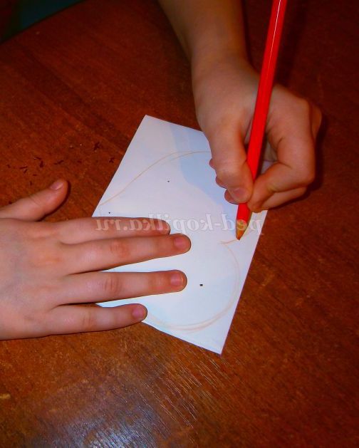 Обведемо сердечко на другу частину кольорового паперу олівцем і виріжемо. Дві сторони готові сердечка.