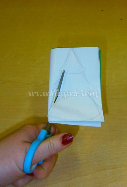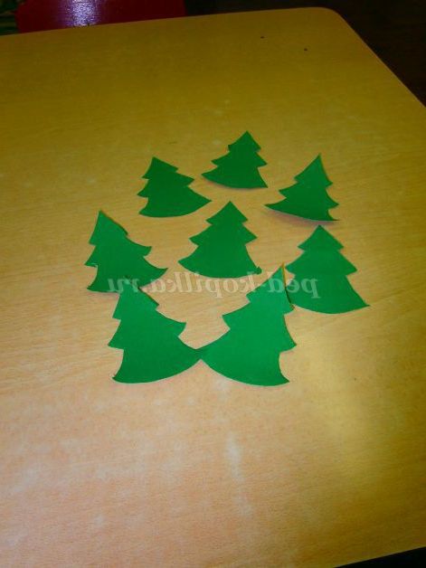 Не забудемо, що нам потрібно 12 ялинок. З другого аркуша виріжемо ще точно такі ж 4 ялинки.