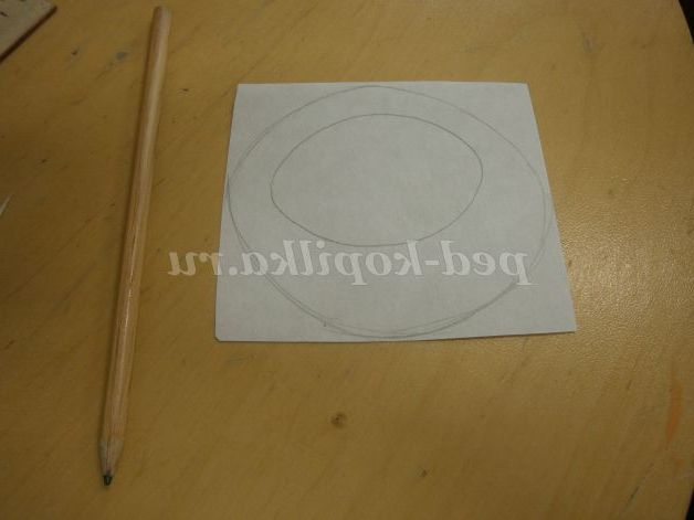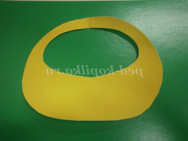 2. Робимо кошичок. Для цього нам знадобитися жовта оксамитова папір, чверть аркуша А4. Малюємо олівцем контур кошика.