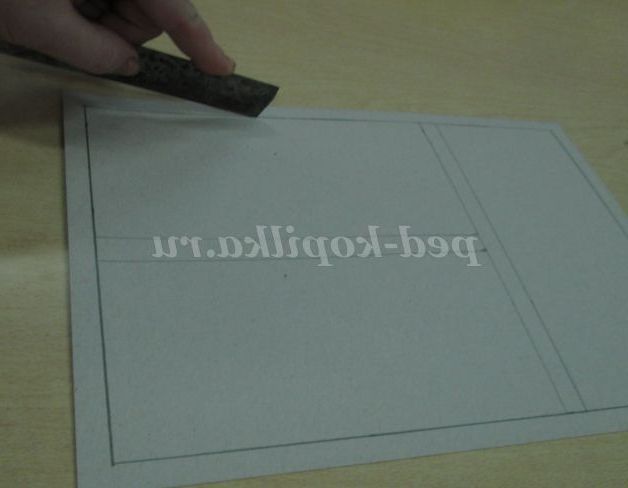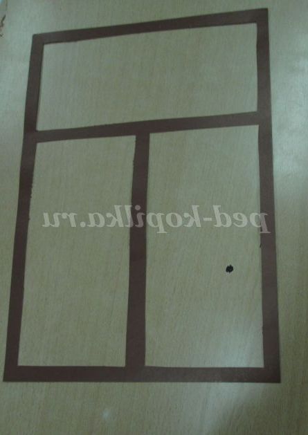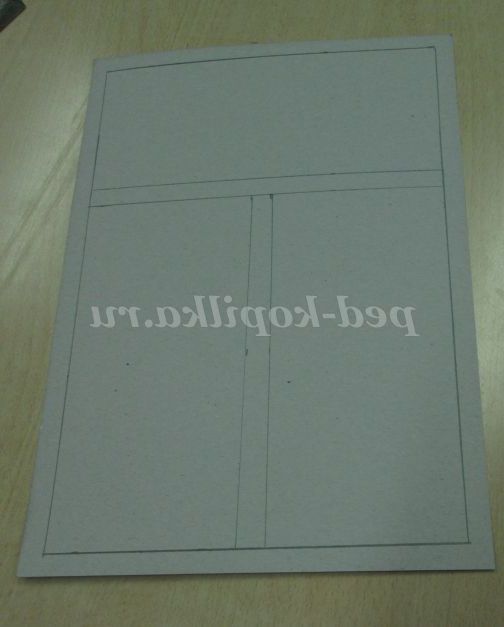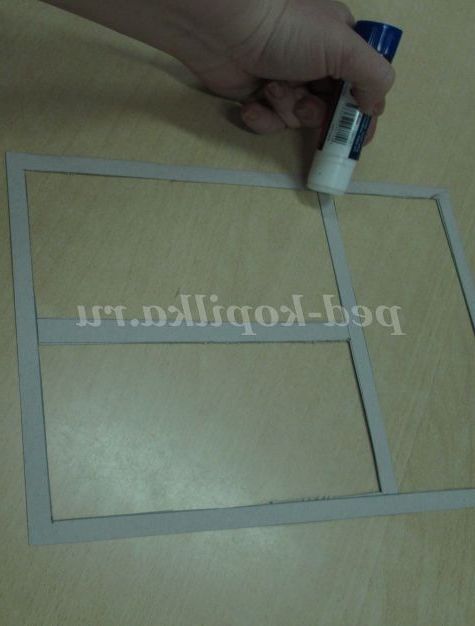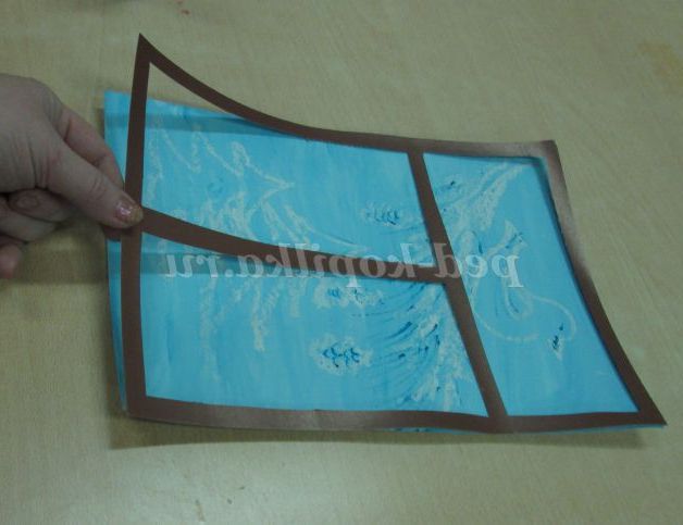 3. Тепер нам потрібна рамочка. Вона у нас теж буде незвичайна. Вона буде дуже, дуже схожою на віконну раму. Адже не дарма ж наша робота називається «За моїм вікном зима». Нам знадобитися коричневий картон, лінійка, олівець.