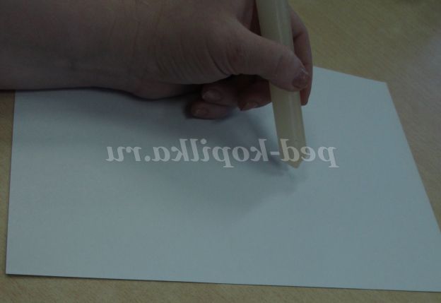 1. Починаємо роботу з виконання малюнка свічкою. Беремо аркуш білого картону і свічку.
