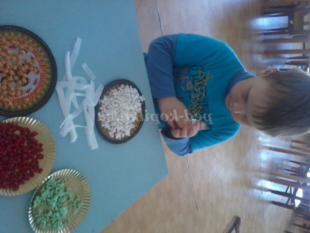 Нарізаємо довгі смужки і катаємо з них кульки, різних кольорів.
