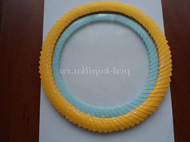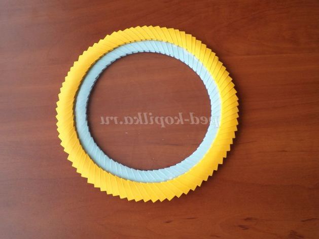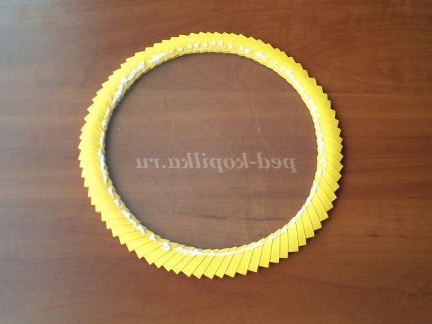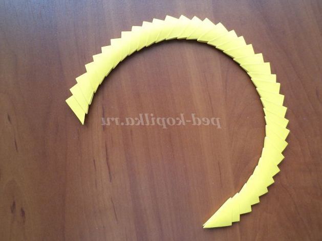 15б.Соединяем жовті модулі між собою (не дуже щільно), поступово заокруглюючи їх, надаючи коло.