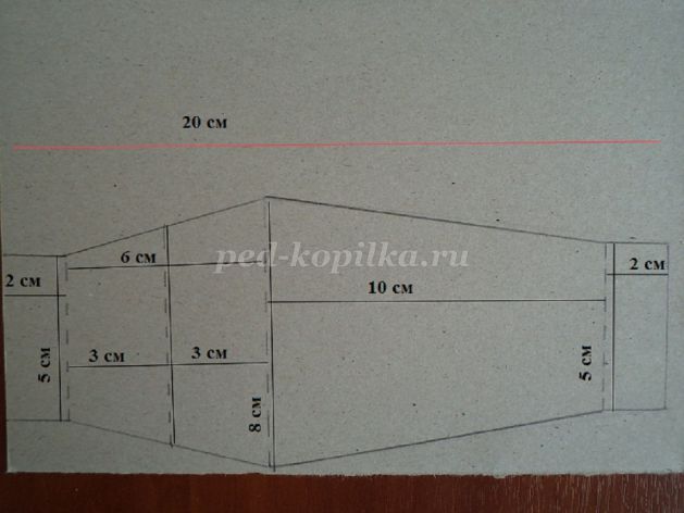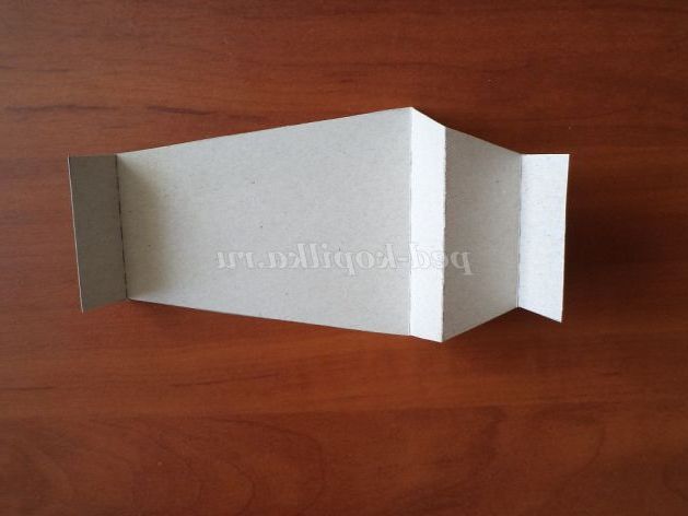 27. Вирізаємо з суцільним лініях. По пунктирних лініях проводимо биговкой (спицею або кінчиком маленьких ножиць). Так картон легше і акуратніше скласти. І складаємо як на фото.