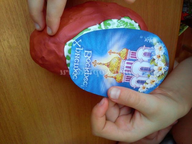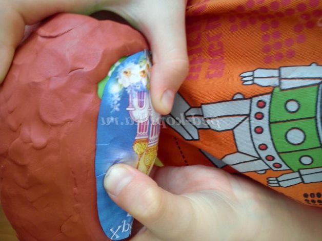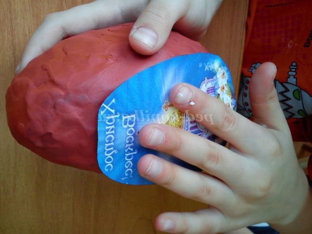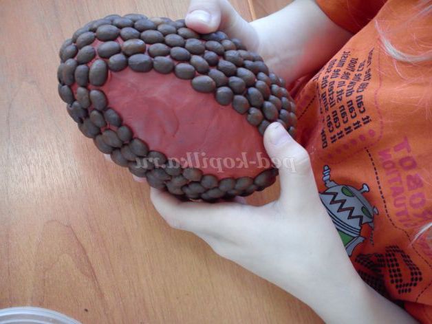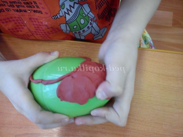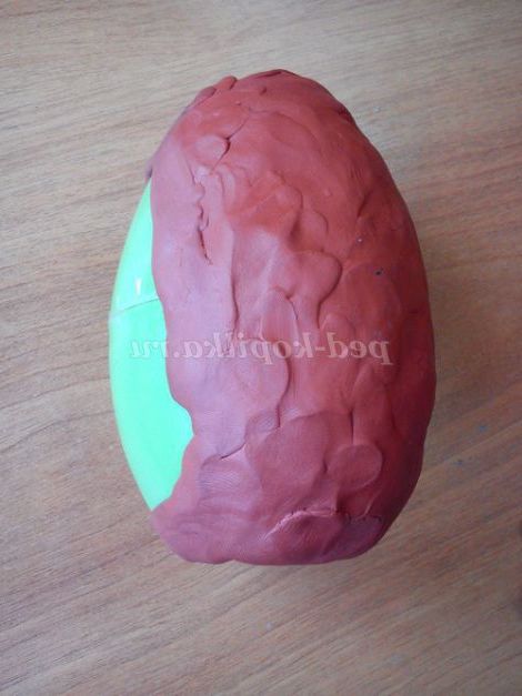 Обмазуємо пластиліном всю поверхню пластмасового яйця (фото 14,15)