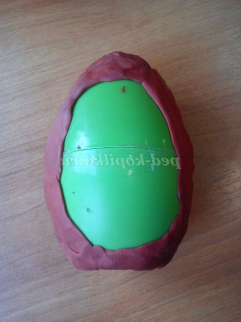 Пластиліном обмазуємо пластмасове яйце починаючи від контуру (фото 12,13)