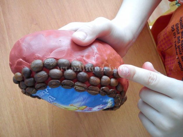 приступаємо до прикраси поверхні підставки зернами кави (фото 53,54,55,56)