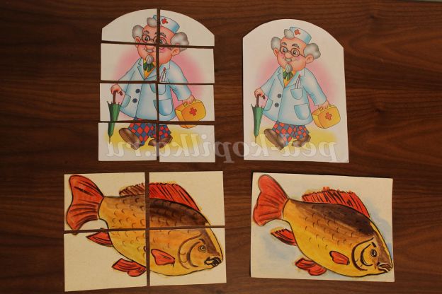 На перших порах картинки краще використовувати найпростіші, з малою кількістю окремих шматочків. Зображення на картинці має бути впізнаваним і добре знайомим дитині. Добре, якщо у вас дві однакові картинки. Тоді одну можна залишити як зразок. Пізніше, коли малюк вже добре освоїть цю гру, зразок йому буде не потрібен. Для гри можуть стати в нагоді картинки зі старих книжок або розмальовок. Також можна намалювати малюнки своїми руками, так вийде ще цікавіше. Використовувані в малюнку кольори повинні бути яскравими, але не дратівливими. А можна використовувати картинки (забарвлення), які знаходяться в даному розділі