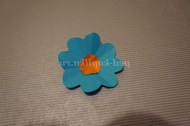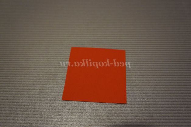 9. Тепер приступимо до виготовлення квітів. Візьмемо шматочок кольорового паперу квадратної форми. Від розміру квадрата буде залежати розмір квітки.