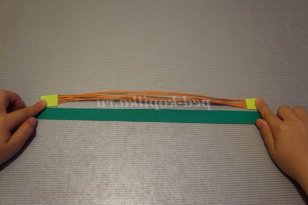 4. Від аркуша картону зеленого кольору відріжемо смужку шириною в 1 сантиметр.