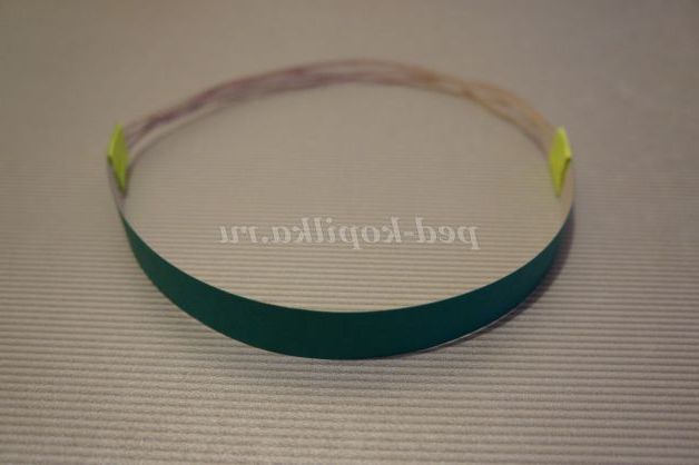 7. Склеим кінці зеленого картону з кінчиками, отриманими при склеюванні соломки. Для більшої міцності можна скріпити кінці між собою за допомогою степлера.