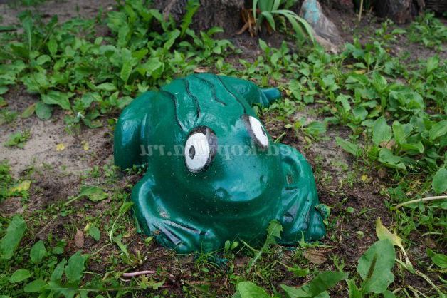 9. Перед замком «оселилися» жаба і черепаха. Бетонні скульптури - подарунок батьків, а вихователі розфарбували їх яскравими фарбами.