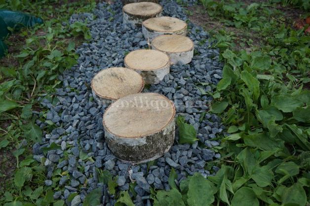 2. З пнів була складена, оптимальна на мій погляд, композиція. Для безпеки дитячих прогулянок пні були вкопані в землю і скріплені між собою цвяхами.
