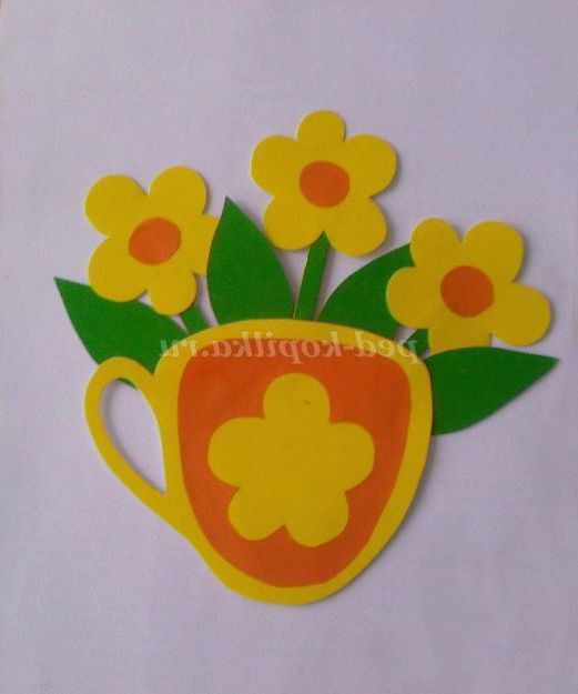 Склеюємо стеблинки з квіточками і наклеюємо на чашку.