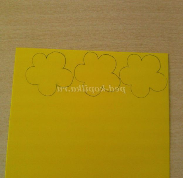 Шаблон квітки обводимо на жовтому картоні і вирізаємо.