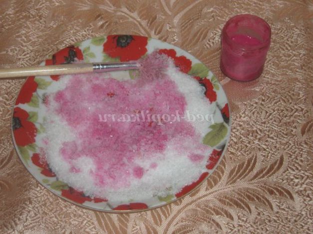 Цвітну сіль можна отримати шляхом фарбування її гуашшю.