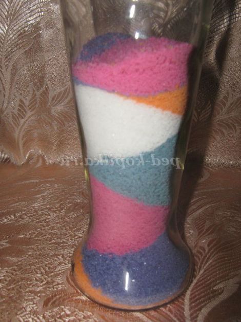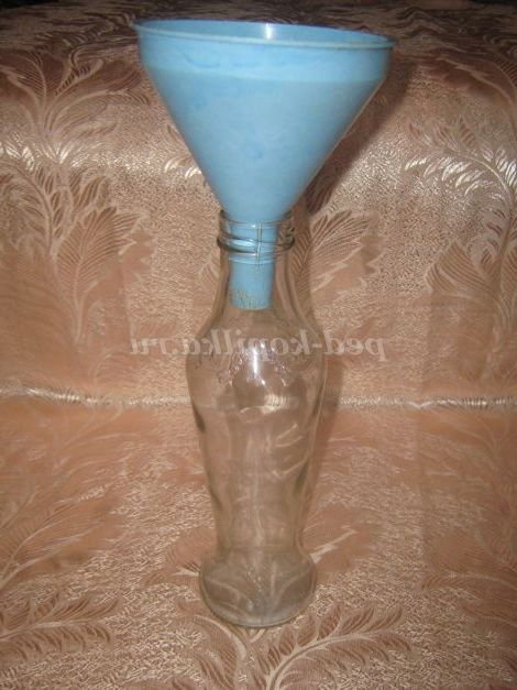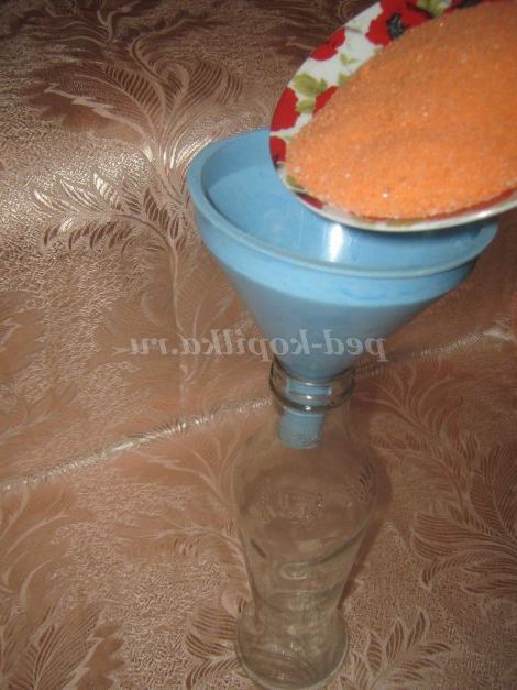 1. Беремо воронку і шарами засипаємо кольорову сіль в пляшку.